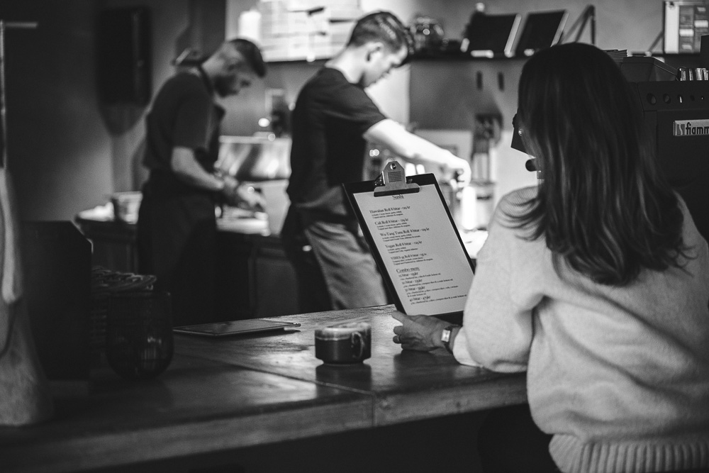 Välj din maträtt, bestäm tid du vill hämta maten och betala enkelt med kort eller Swish